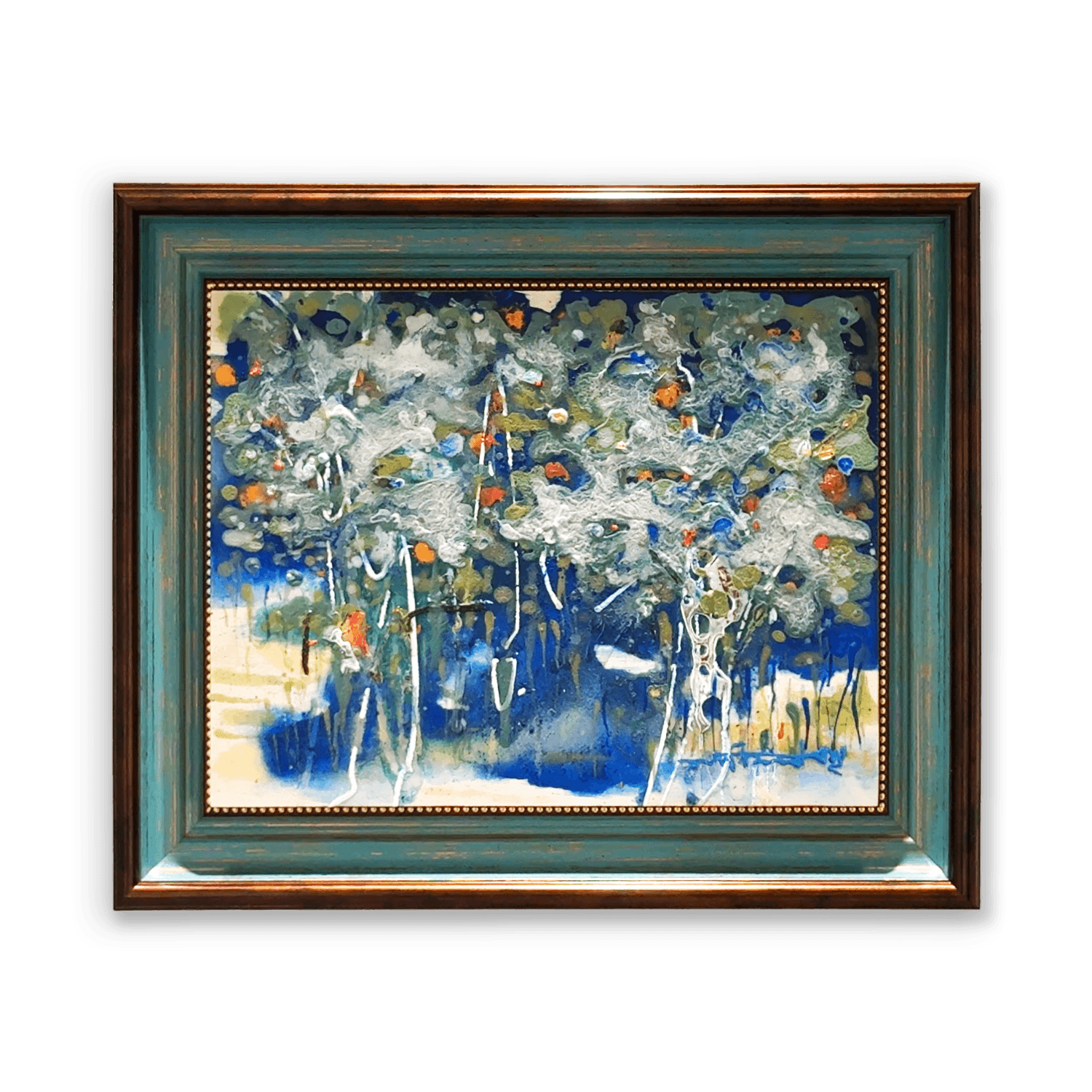 액자에 아크릴, 알루미늄, 레진 및 혼합매체